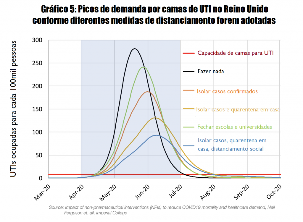 Este gráfico apareceu em um artigo muito importante publicado no fim de semana no Imperial College de Londres. Aparentemente, ele levou os governos do Reino Unido e dos EUA a mudarem de rumo.